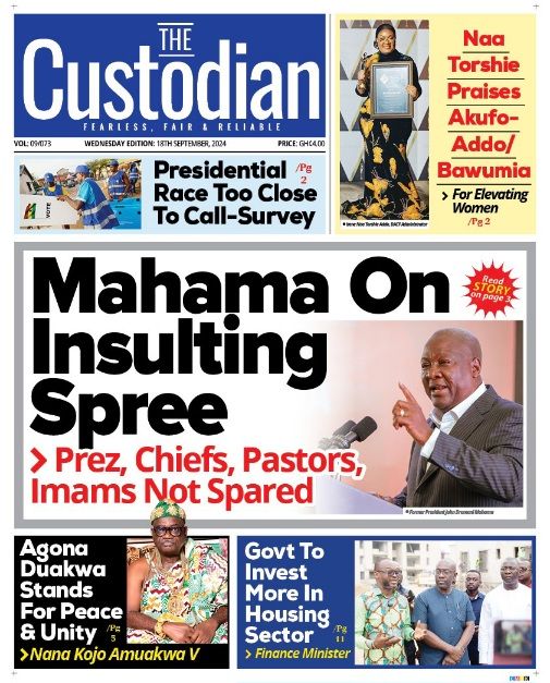 NEWSPAPER HEADLINES: Wednesday 18th September, 2024