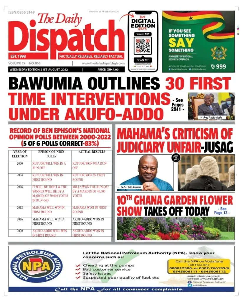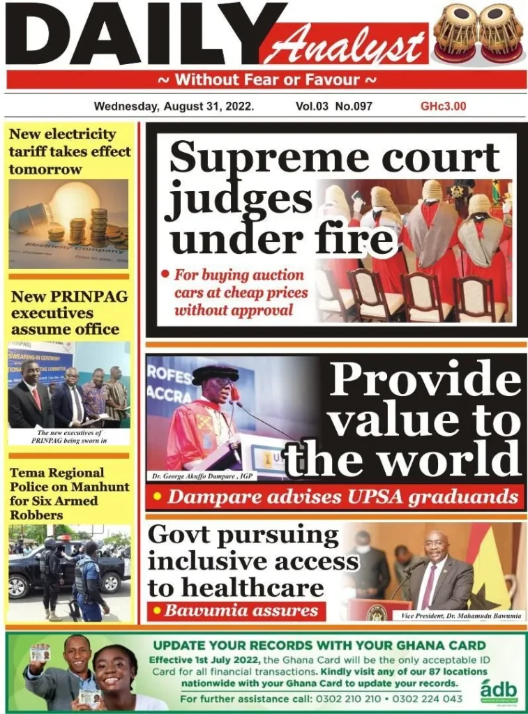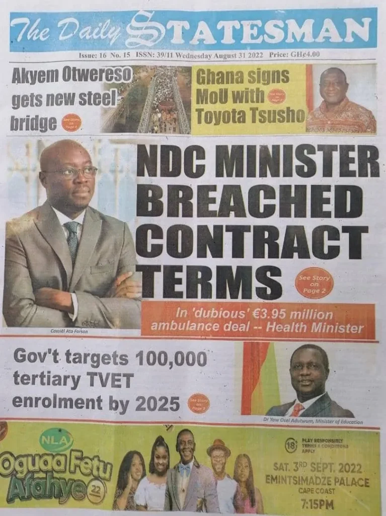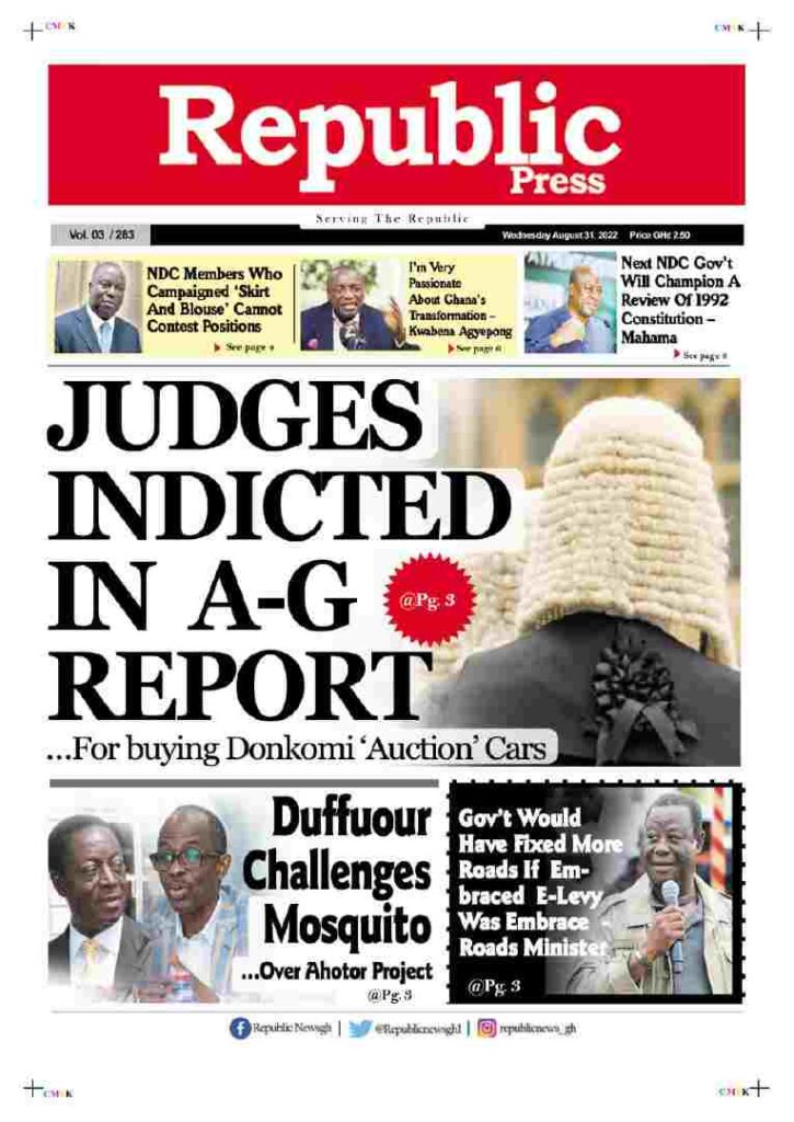 The headlines of the main stories have been captured on the national newspapers' front pages. <img class="alignnone wp-image-36449 size-large" src="https://myrepubliconline.com/wp-content/uploads/2022/08/CompressJPEG.Online_50kb_1771-725x1024.jpg" alt="" width="725" height="1024" /> <img class="alignnone wp-image-36448 size-large" src="https://myrepubliconline.com/wp-content/uploads/2022/08/CompressJPEG.Online_50kb_38911-723x1024.jpg" alt="" width="723" height="1024" /><img class="alignnone wp-image-36451 size-large" src="https://myrepubliconline.com/wp-content/uploads/2022/08/Analyst-3-757x1024.webp" alt="" width="757" height="1024" /> <img class="alignnone wp-image-36452 size-large" src="https://myrepubliconline.com/wp-content/uploads/2022/08/BFT-1-707x1024.webp" alt="" width="707" height="1024" /> <img class="alignnone wp-image-36453 size-large" src="https://myrepubliconline.com/wp-content/uploads/2022/08/Chronicle-3-801x1024.webp" alt="" width="801" height="1024" /> <img class="alignnone wp-image-36454 size-large" src="https://myrepubliconline.com/wp-content/uploads/2022/08/Crusading-1-853x1024.webp" alt="" width="853" height="1024" /> <img class="alignnone wp-image-36455 size-large" src="https://myrepubliconline.com/wp-content/uploads/2022/08/Custod-823x1024.webp" alt="" width="823" height="1024" /> <img class="alignnone wp-image-36456 size-large" src="https://myrepubliconline.com/wp-content/uploads/2022/08/Dispatch-3-825x1024.webp" alt="" width="825" height="1024" /> <img class="alignnone wp-image-36457 " src="https://myrepubliconline.com/wp-content/uploads/2022/08/Finder-2.webp" alt="" width="728" height="961" /> <img class="alignnone wp-image-36458 size-large" src="https://myrepubliconline.com/wp-content/uploads/2022/08/Graphic-2-780x1024.webp" alt="" width="780" height="1024" /> <img class="alignnone wp-image-36459 size-large" src="https://myrepubliconline.com/wp-content/uploads/2022/08/Guide-2-766x1024.webp" alt="" width="766" height="1024" /> <img class="alignnone wp-image-36460 size-large" src="https://myrepubliconline.com/wp-content/uploads/2022/08/Post-1-777x1024.webp" alt="" width="777" height="1024" /> <img class="alignnone wp-image-36461 size-large" src="https://myrepubliconline.com/wp-content/uploads/2022/08/Publisher-2-783x1024.webp" alt="" width="783" height="1024" /> <img class="alignnone wp-image-36462 size-large" src="https://myrepubliconline.com/wp-content/uploads/2022/08/Statesman-3-767x1024.webp" alt="" width="767" height="1024" /> <img class="alignnone wp-image-36463 size-large" src="https://myrepubliconline.com/wp-content/uploads/2022/08/Times-2-791x1024.webp" alt="" width="791" height="1024" />