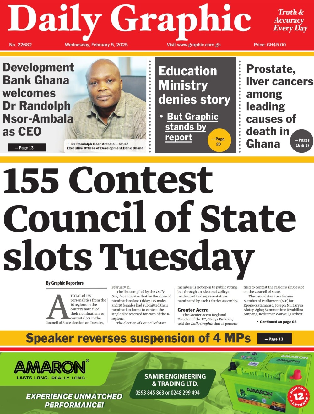 Headlines of major news items, as captured on the front pages of newspapers. <a href="https://myrepubliconline.com/newspaper-headlines-wednesday-february-5-2025/republic-6/" rel="attachment wp-att-107944"><img class="alignnone size-full wp-image-107944" src="https://myrepubliconline.com/wp-content/uploads/2025/02/Republic.jpg" alt="" width="1134" height="1600" /></a> <a href="https://myrepubliconline.com/newspaper-headlines-wednesday-february-5-2025/graphic-53/" rel="attachment wp-att-107939"><img class="alignnone size-full wp-image-107939" src="https://myrepubliconline.com/wp-content/uploads/2025/02/Graphic-1.jpg" alt="" width="1000" height="1318" /></a><a href="https://myrepubliconline.com/newspaper-headlines-wednesday-february-5-2025/newsday-2/" rel="attachment wp-att-107945"><img class="alignnone size-full wp-image-107945" src="https://myrepubliconline.com/wp-content/uploads/2025/02/Newsday-1.jpg" alt="" width="1133" height="1600" /></a><a href="https://myrepubliconline.com/newspaper-headlines-wednesday-february-5-2025/statecraft/" rel="attachment wp-att-107946"><img class="alignnone size-full wp-image-107946" src="https://myrepubliconline.com/wp-content/uploads/2025/02/statecraft.jpg" alt="" width="1137" height="1600" /></a><a href="https://myrepubliconline.com/newspaper-headlines-wednesday-february-5-2025/voice-4/" rel="attachment wp-att-107947"><img class="alignnone size-full wp-image-107947" src="https://myrepubliconline.com/wp-content/uploads/2025/02/Voice-1.jpg" alt="" width="1134" height="1600" /></a><a href="https://myrepubliconline.com/newspaper-headlines-wednesday-february-5-2025/bft-11/" rel="attachment wp-att-107949"><img class="alignnone size-full wp-image-107949" src="https://myrepubliconline.com/wp-content/uploads/2025/02/BFT-2.jpg" alt="" width="759" height="1080" /></a><a href="https://myrepubliconline.com/newspaper-headlines-wednesday-february-5-2025/punch-3/" rel="attachment wp-att-107950"><img class="alignnone size-full wp-image-107950" src="https://myrepubliconline.com/wp-content/uploads/2025/02/punch.jpg" alt="" width="1183" height="1600" /></a><a href="https://myrepubliconline.com/newspaper-headlines-wednesday-february-5-2025/ghanaian-guide-3/" rel="attachment wp-att-107952"><img class="alignnone size-full wp-image-107952" src="https://myrepubliconline.com/wp-content/uploads/2025/02/Ghanaian-Guide-1.jpg" alt="" width="720" height="934" /></a><a href="https://myrepubliconline.com/newspaper-headlines-wednesday-february-5-2025/analyst-wednesday-8/" rel="attachment wp-att-107953"><img class="alignnone size-full wp-image-107953" src="https://myrepubliconline.com/wp-content/uploads/2025/02/Analyst-wednesday.jpg" alt="" width="778" height="1056" /></a><a href="https://myrepubliconline.com/newspaper-headlines-wednesday-february-5-2025/search-5/" rel="attachment wp-att-107954"><img class="alignnone size-full wp-image-107954" src="https://myrepubliconline.com/wp-content/uploads/2025/02/search.jpg" alt="" width="660" height="867" /></a><a href="https://myrepubliconline.com/newspaper-headlines-wednesday-february-5-2025/img-20250205-wa00089036512519121005034/" rel="attachment wp-att-107959"><img class="alignnone size-full wp-image-107959" src="https://myrepubliconline.com/wp-content/uploads/2025/02/img-20250205-wa00089036512519121005034.jpg" alt="" width="479" height="640" /></a><a href="https://myrepubliconline.com/newspaper-headlines-wednesday-february-5-2025/img-20250205-wa00042769237354904476877/" rel="attachment wp-att-107960"><img class="alignnone size-full wp-image-107960" src="https://myrepubliconline.com/wp-content/uploads/2025/02/img-20250205-wa00042769237354904476877.jpg" alt="" width="505" height="648" /></a><a href="https://myrepubliconline.com/newspaper-headlines-wednesday-february-5-2025/img-20250205-wa00055525641465658794383/" rel="attachment wp-att-107961"><img class="alignnone size-full wp-image-107961" src="https://myrepubliconline.com/wp-content/uploads/2025/02/img-20250205-wa00055525641465658794383.jpg" alt="" width="520" height="648" /></a><a href="https://myrepubliconline.com/newspaper-headlines-wednesday-february-5-2025/img-20250205-wa00008241406721795896374/" rel="attachment wp-att-107962"><img class="alignnone size-full wp-image-107962" src="https://myrepubliconline.com/wp-content/uploads/2025/02/img-20250205-wa00008241406721795896374.jpg" alt="" width="432" height="544" /></a><a href="https://myrepubliconline.com/newspaper-headlines-wednesday-february-5-2025/img-20250205-wa00062061612469029077824/" rel="attachment wp-att-107963"><img class="alignnone size-full wp-image-107963" src="https://myrepubliconline.com/wp-content/uploads/2025/02/img-20250205-wa00062061612469029077824.jpg" alt="" width="522" height="648" /></a><a href="https://myrepubliconline.com/newspaper-headlines-wednesday-february-5-2025/img-20250205-wa0007182658268165356298/" rel="attachment wp-att-107964"><img class="alignnone size-full wp-image-107964" src="https://myrepubliconline.com/wp-content/uploads/2025/02/img-20250205-wa0007182658268165356298.jpg" alt="" width="484" height="648" /></a> <a href="https://myrepubliconline.com/newspaper-headlines-wednesday-february-5-2025/junior-graphic/" rel="attachment wp-att-107940"><img class="alignnone size-full wp-image-107940" src="https://myrepubliconline.com/wp-content/uploads/2025/02/junior-graphic.jpg" alt="" width="1000" height="1318" /></a>