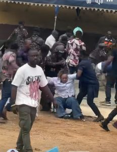 The chaos unfolded when a group of unidentified individuals stormed the polling station, unleashing violence that targeted several NPP members. Asamoah was seen in a widely circulated video being overpowered, dragged to the ground, and viciously kicked and punched.