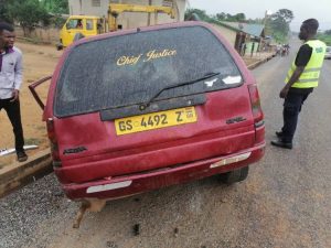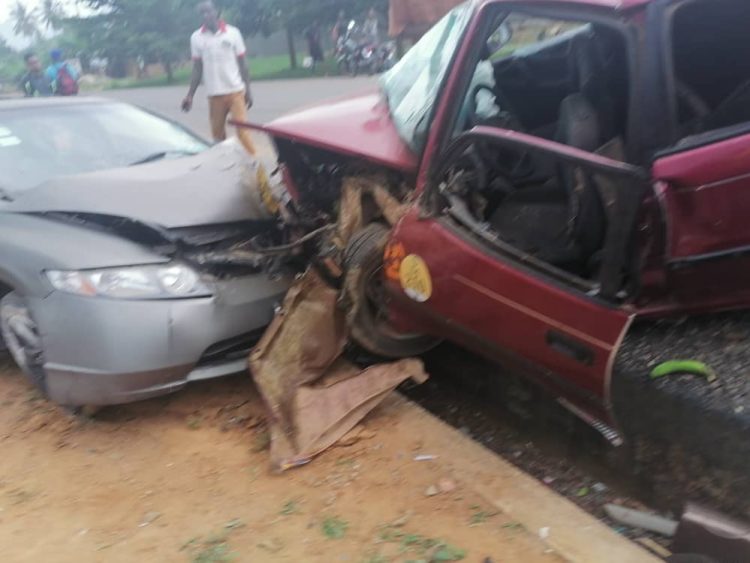 According to the Assemblyman for the Nyamekrom Electoral Area, Enoch Boahene—who narrowly escaped the accident while riding his motorcycle near the Jehovah’s Witness Church in Nyamekrom—the taxi driver was speeding and made a wrongful overtaking, leading to the head-on collision.
