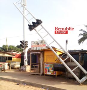 Myrepubliconline’s lens captured a faulty and damaged traffic light at Ablekuma-Pentecost Junction in the Ga Central Municipality.
