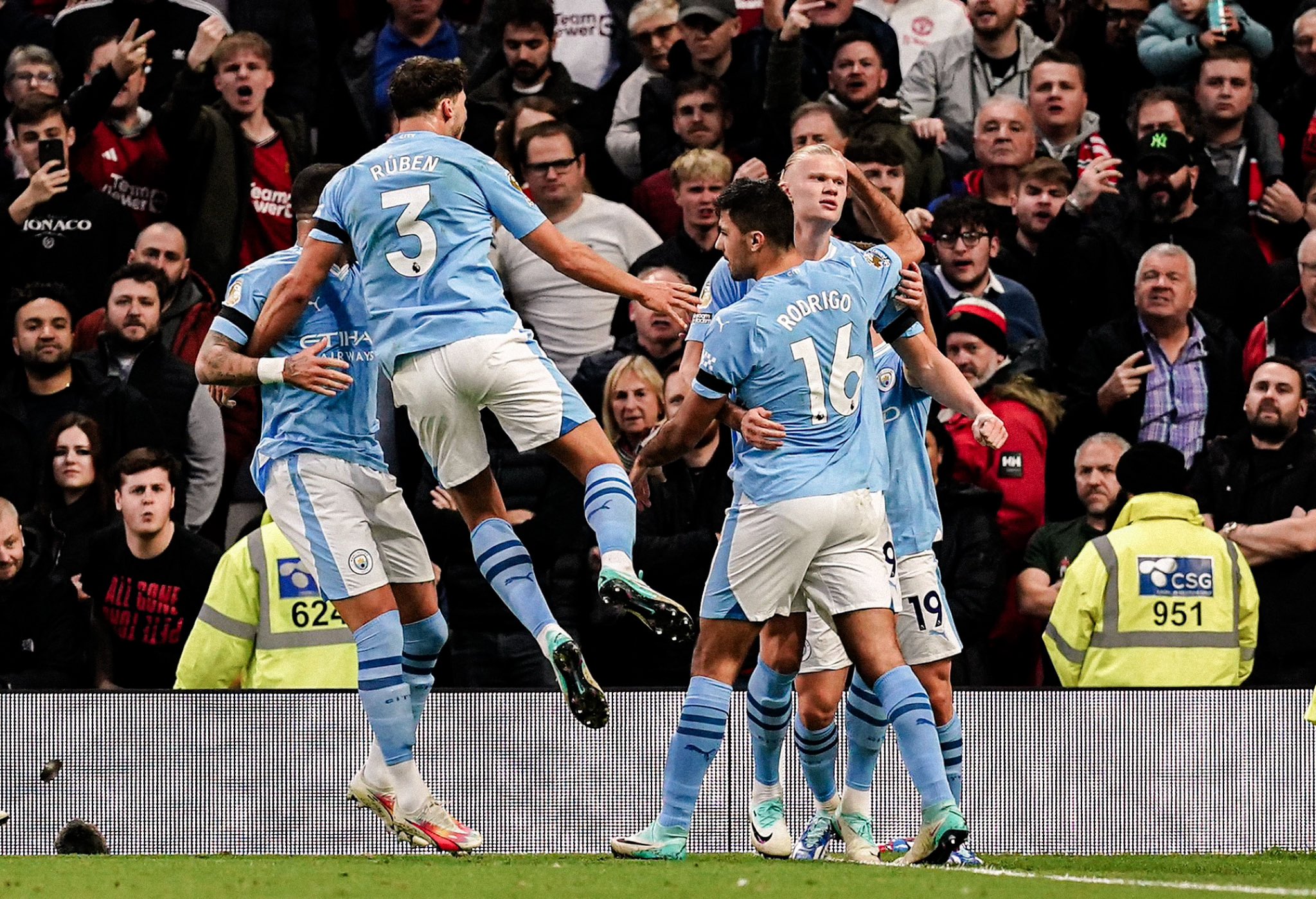 United keeper Andre Onana produced a brilliant save to deny Haaland a second from a far-post header on the stroke of half-time but the striker did not have to wait long to double City’s lead from an almost identical situation four minutes after the break, Bernardo Silva delivering a perfect cross.