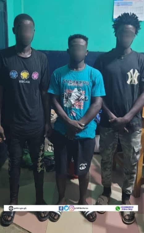 The suspects were arrested on 25th June 2025, following intelligence received that three unidentified young men had attacked a gold dealer at Sekyem, fired shots at him, assaulted him and fled the scene on a motorbike.