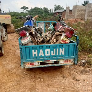 Other seized items include two excavators, two Hyundai excavator monitors, three unregistered motorbikes, an unregistered Haojin tricycle, and a newly installed water pump machine.