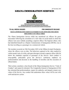 According to GIS, the officers’ conduct represents a clear breach of the Ghana Immigration Service Code of Conduct and is entirely unacceptable.