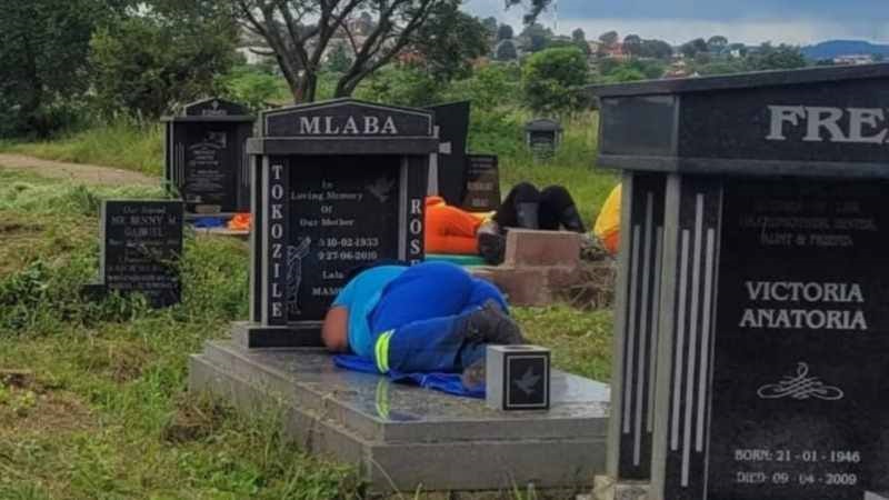 A municipality in South Africa says it will charge some of it staff for misconduct after pictures surfaced on social media showing them sitting and sleeping on top of graves.