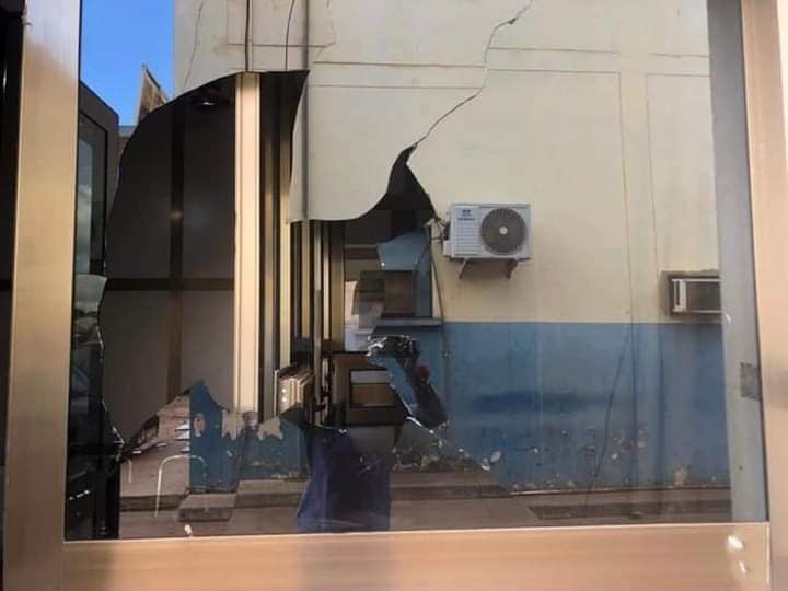 Upon reaching the police station, the irate youth began pelting stones at the police building, destroying the glass doors and windows of parts of the building.