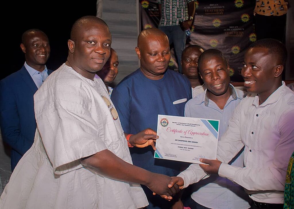 At the gathering, the MP announced the best teacher, Mr. Sampong Eric Boadi, a head teacher at Ata ne Ata D/A basic school. He was first posted to Hweehwee Presby Primary in 2012. Due to his hard work, he was made the head teacher of Ata ne Ata basic school.