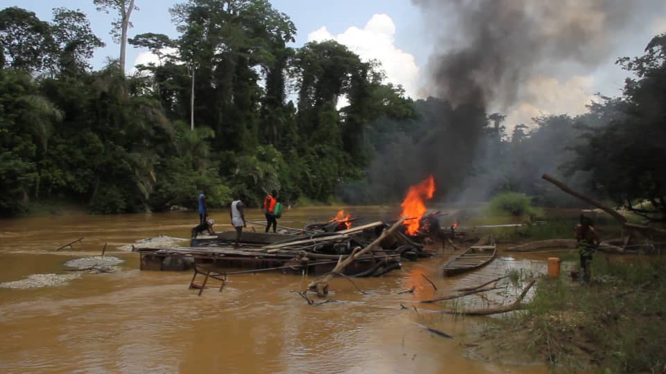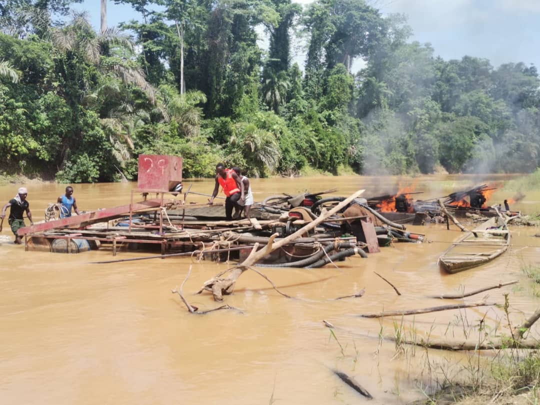 The Security Task Force once again burnt to ashes 11 illegal Mining Dredging Machines during their operations.