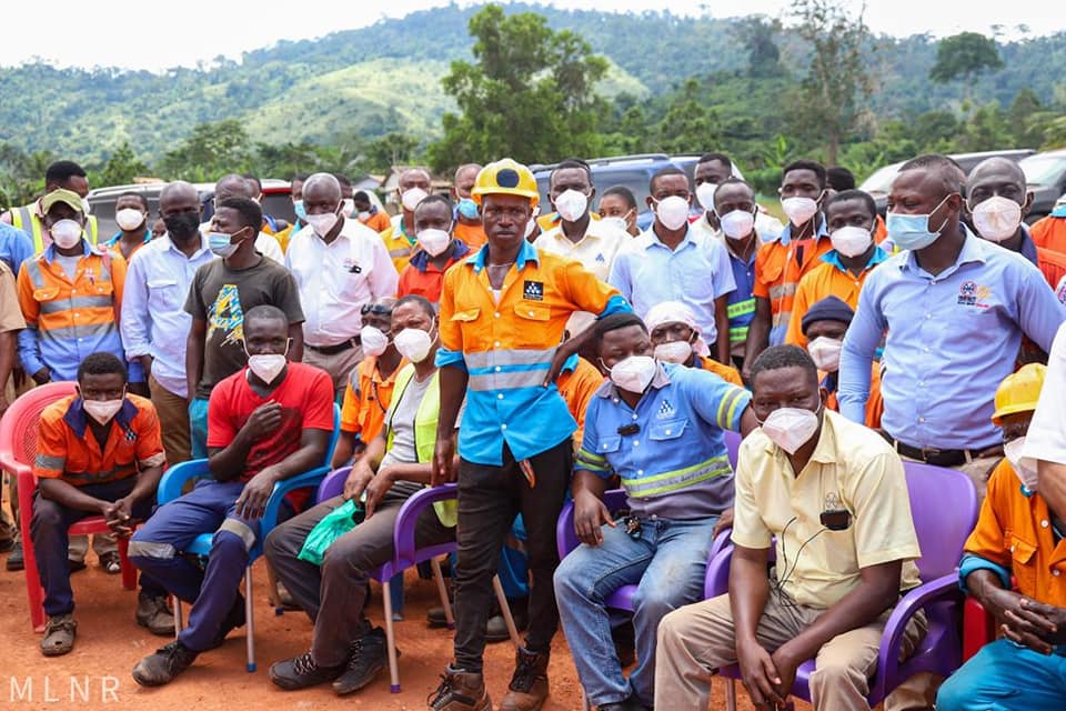 Hon. George Mireku Duker and his entourage including the CEO of Minerals Commission, Mr. Martin Ayisi, CEO of GIADEC, Mr. Michael Ansah, the Chief Inspector of Mines, Richard Kofi Adjei and the Technical Director of Mines, Mr. Peter Awuah are on a fact-finding mission to unravel the full state of the company and how the issues crippling it can be resolved.