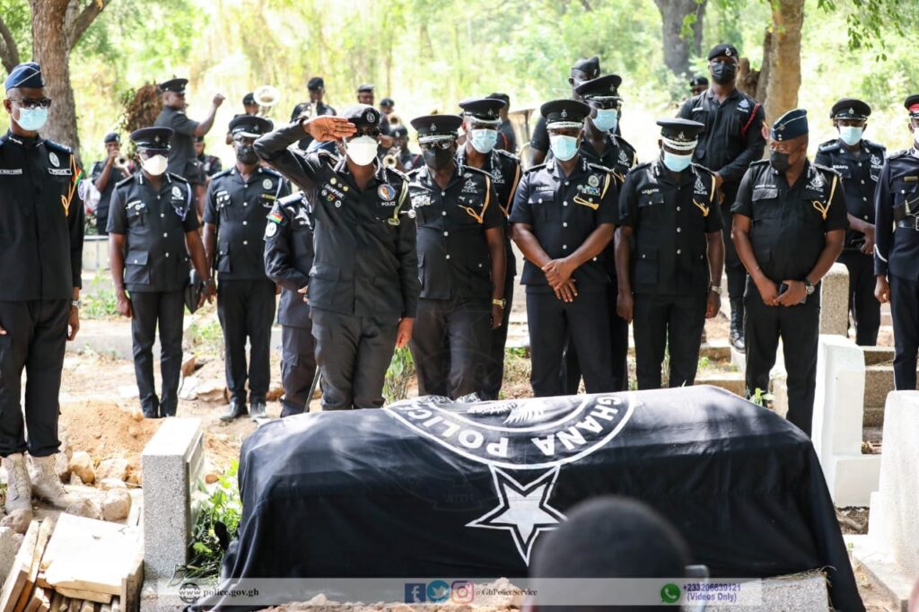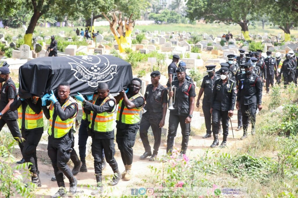 The Ghana Police Service today, Saturday, December 18, 2021, held a burial ceremony for the late No.57658 General Constable Adams Sulley who was gruesomely murdered at Zuarungu in the Upper East Region together with his patrol colleague officer on Wednesday, December 15, 2021, while on patrols.