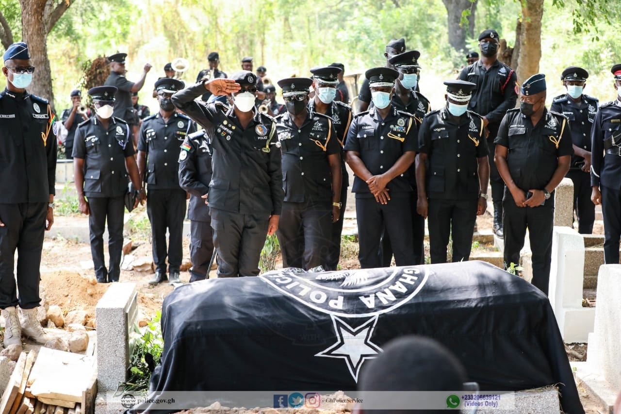 Accompanying the IGP for the burial rites were COP Mr Paul Manly Awini, DG/National Patrol and Visibility Department; COP Mr Patrick Akolgo, DG/National Protection Department; COP Mr Edward Tabiri, DG/ICT; COP Mr Frederick Adu-Anim, DG/Human Resource Department; DCOP Mr Francis Aboagye-Nyarko, DG/MTTD; DCOP Dr. Ernest Owusu-Nsiah, DG/Research, Planning and Transformation; DCOP Mr Isaac Emmanuel Quist, Administrator/Police Hospital Accra; Accra Regional Police Commander DCOP Mr Seidu Lansah Iddi and ACP Mr Kwesi Ofori, DG/Public Affairs Directorate, among others